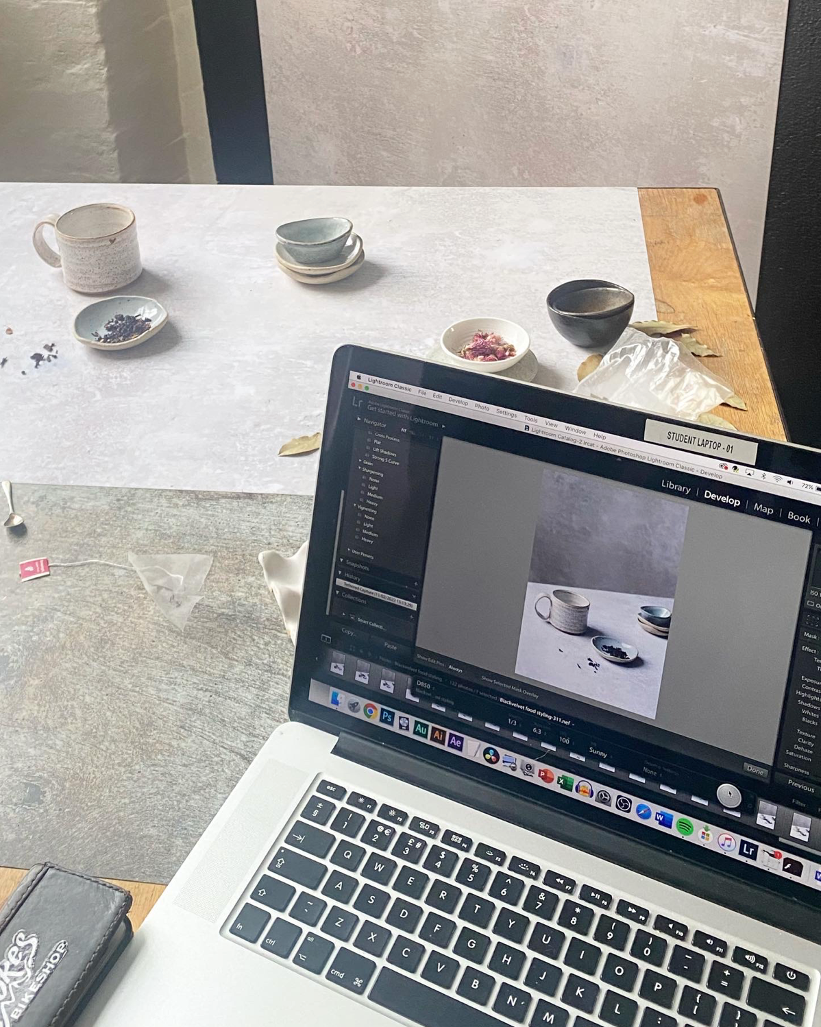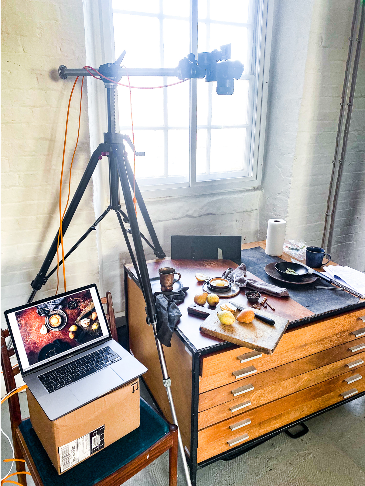 Throughout the workshop you will have full access to my lighting aids and prop collection including ceramics, linen, glassware, bakeware, cutlery, utensils, backdrops and curiosities plus fresh foliage and seasonal food to complete the styling exercises.